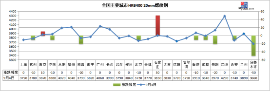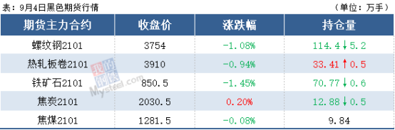 熱軋板卷:9月4日,全國24個主要城市4.75mm熱軋板卷均價4033元/噸,較上個交易日下跌5元/噸。今日黑色商品期貨市場低位震蕩,早盤現(xiàn)貨市場報價暫穩(wěn),受昨日夜盤跳水影響商家心態(tài)稍有走弱,盤中成交不佳,價格小幅下跌,午后市場情緒稍有穩(wěn)定,成交開始有所好轉(zhuǎn)。整周來看,供應(yīng)方面:產(chǎn)量繼續(xù)維持高位,鋼廠端受原料成本以及利潤支撐,主動減產(chǎn)意向不強(qiáng);庫存方面:社會庫存開始累庫,北材南下華東資源量加大,華東地區(qū)部分碼頭開始出現(xiàn)排隊集港現(xiàn)象,短期市場壓力華東大于華南大于華北。預(yù)計下周熱軋板卷或?qū)⒕S持弱勢震蕩運(yùn)行。