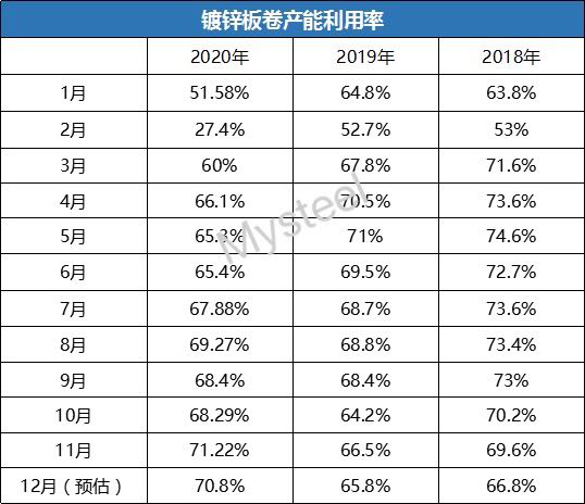 表1:近三年鍍鋅板卷產(chǎn)能利用率情況