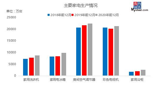 據(jù)悉,國家統(tǒng)計局公布了我國家用電器2020年11月的產(chǎn)量數(shù)據(jù),房間空氣調(diào)節(jié)器生產(chǎn)1771.6萬臺,同比增加5.5%;家用電冰箱生產(chǎn)898.9萬臺,同比增長22.5%;家用洗衣機生產(chǎn)856.6萬臺,同比增長13.1%;彩色電視機生產(chǎn)1962.2萬臺,同比增長5.1%。細分不同電器來看,空調(diào):12月份空調(diào)企業(yè)的排產(chǎn)量繼續(xù)呈增長態(tài)勢,實際產(chǎn)量有望突破2100萬臺,創(chuàng)單月歷史新高。冰洗:產(chǎn)量維持高增長。彩電:由于海外疫情仍然不樂觀,預計對于彩電的需求仍將持續(xù),將繼續(xù)帶動彩電產(chǎn)量的增長。