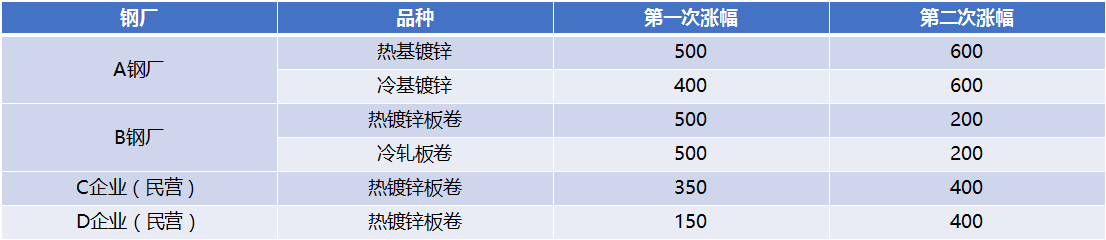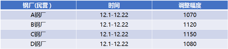 表2:部分鋼廠12月兩次調(diào)價幅度